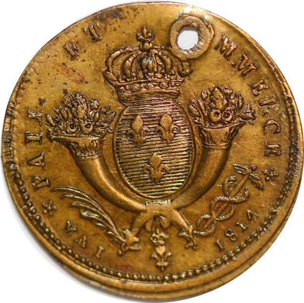 P1369 Rare France Médaille Louis XVIII Paix Commerce Mai 1814 SUP ->Faire offre