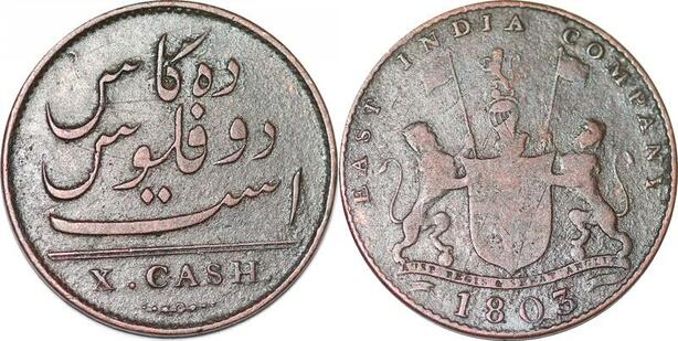P1385 India British Madras Presidency 10 Cash 1803 -> Faire offre