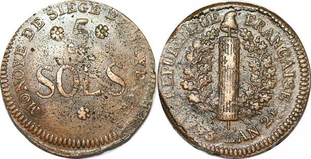 P1396 Germany Siege Mainz Mayence 5 Sols Friedrich Karl Joseph 1793 ->M offer