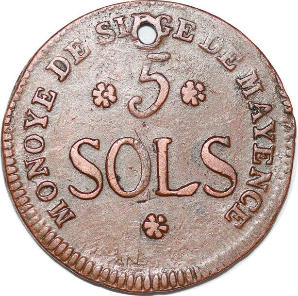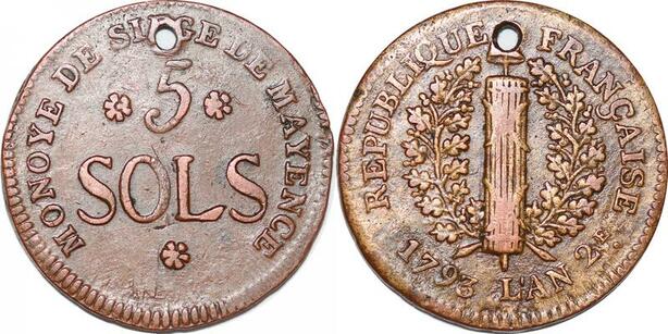 P1398 Germany Siege Mainz Mayence 5 Sols Friedrich Karl Joseph 1793 ->M offer