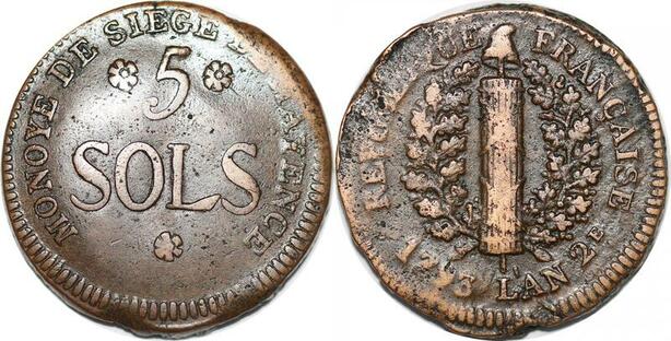 P1404 Germany Siege Mainz Mayence 5 Sols Friedrich Karl Joseph 1793 ->M offer