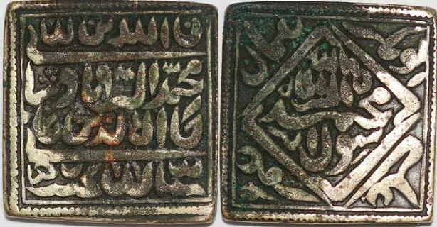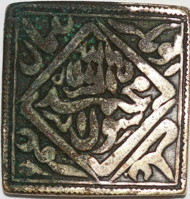 P1460 Rare Token India MUGHAL Square Rupee Akbar I 1556 1605 Lahore Silver