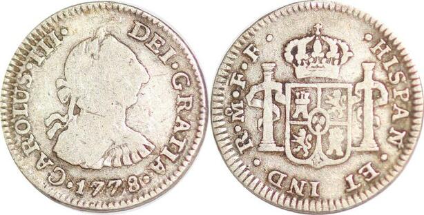 P1479 Mexico 1/2 Reales Carlos III 1778 Mo FF Mexiko City Silver -> Make offer