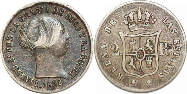 P1493 Scarce Spain 2 Reales Isabel II 1852 Silver ->Make offer