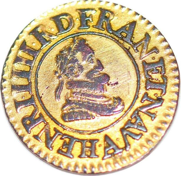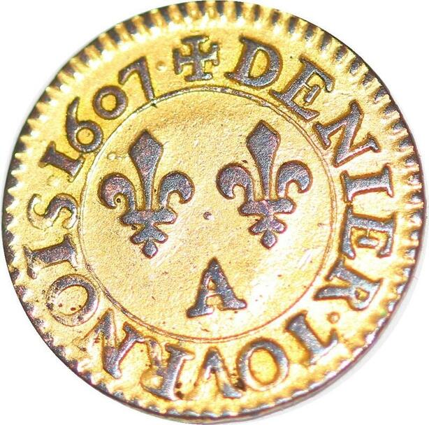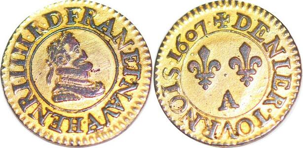 P1539 Très Rare Denier Tournois France Henri IV 1607 A Paris Treizain Mariage SUP