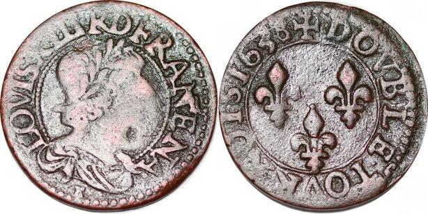 P1541 France Double Tournois Louis XIII 1638 E Tours ->Faire offre