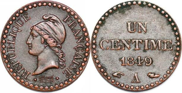 P1579 France Un Centime Dupré 1849 A Paris ->Faire offre