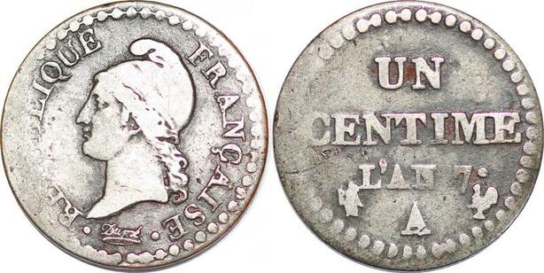 P1585 France Un Centime Dupré an 7 A Paris argenté ->Faire offre