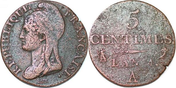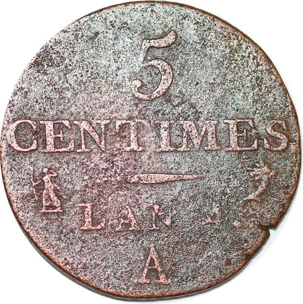 P1593 France 5 Centime Dupré petit module an 4 1795 A Paris ->Faire offre