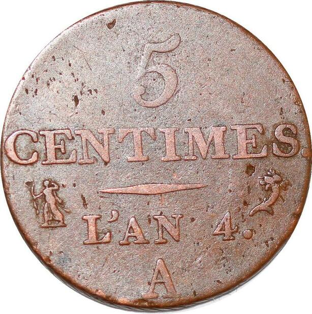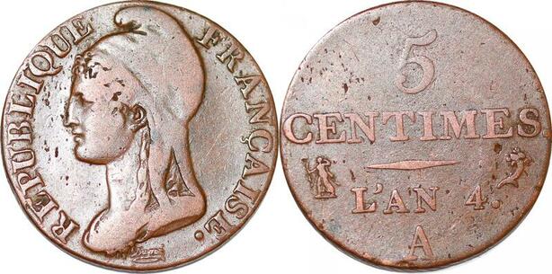 P1603 France 5 Centime Dupré petit module an 4 1795 A Paris ->Faire offre