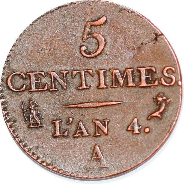 P1606 Rare France 5 Centime Dupré petit module an 4 1795 A Paris SUP >M offer