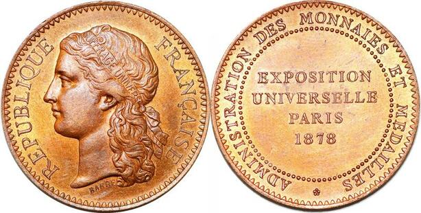 P1750 Rare France Médaille Exposition Universelle Administration Monnaies 1878 SPL