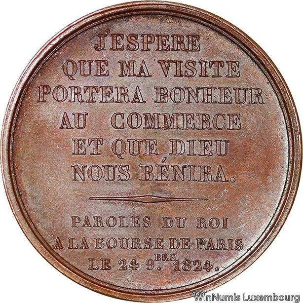 P1864 Rare France Médaille Charles X 1824 Commerce Bourse de Paris SPL ->Faire offre