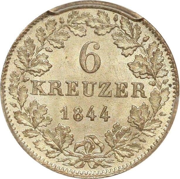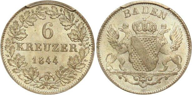 P1904 Germany Rare Baden-Durlach 6 Kreuzer 1844 PCGS MS65 Argent Silver