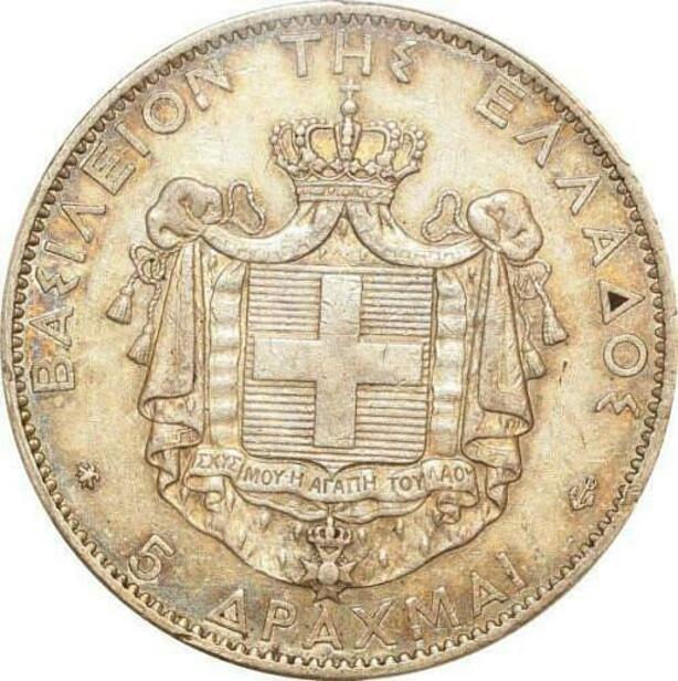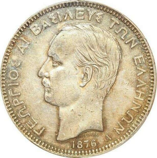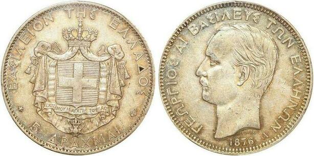 P1907 Greece Rare 5 Drachmai George I 1876 A Paris PCGS XF45 Argent Silver