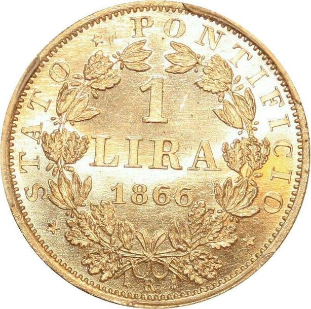 P1909 Very Rare Papal States Vatican Lira Pius IX Pont 1866 R Roma PCGS MS66 Argent Silver