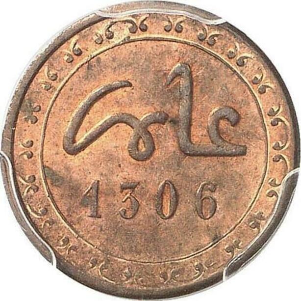 P1920 Morocco Pattern 2 Falus Moulay Al-Hasan I AH 1306 1888 PCGS MS62RB