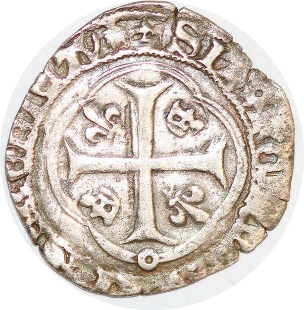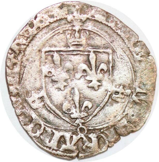 P1981 Rare RR France Blanc à la Couronne Charles VII 1456 Limoges Argent ->F offre