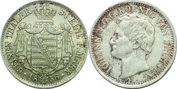 P5981 Germany Saxony Albertine 1/6 Thaler Johann 1856 F Silver AU