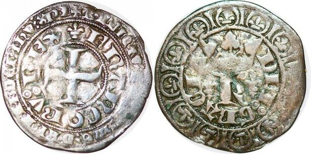 P2012 Rare France Blanc au K Charles V 20 avril 1365 Francorv Argent ->Faire offre