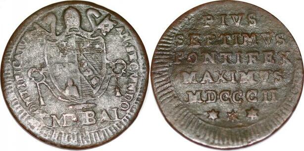 P2039 Italy Pio VII Gregorio Chiaramonti 1800-1823 Mezzo Baiocco 1802 an II