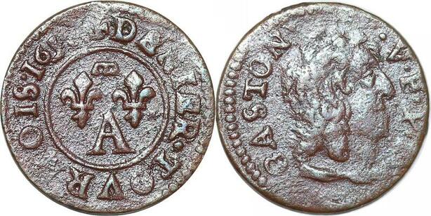 P2093 France Dombes Denier Tournois Gaston d'Orléans 1652 Trévoux ->Faire offre