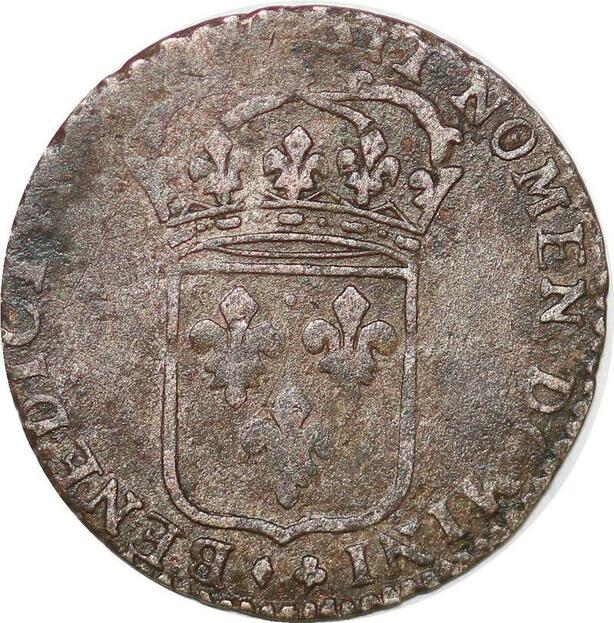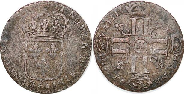 P2121 Tres Rare France Douzain Louis XIV 1638 1715 flan entièrement centré !!! H La Rochelle