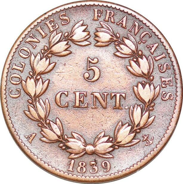 P2166 French Colonies Guyana Guadeloupe 5 Centimes Louis Philippe 1839 A