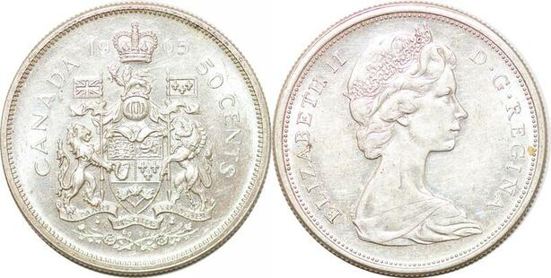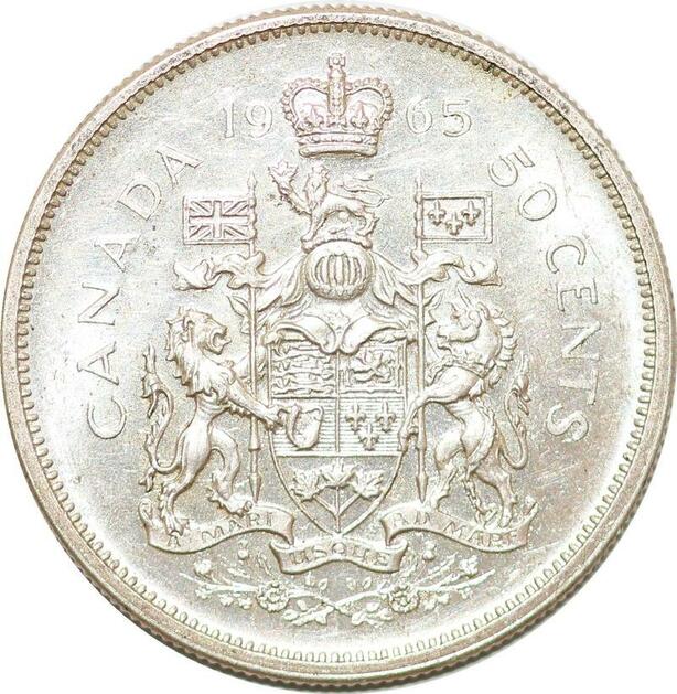 P2175 Canada 50 Cents Elizabeth II 1965 Silver AU ->Make offer
