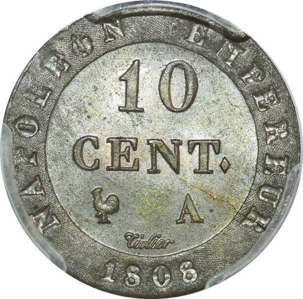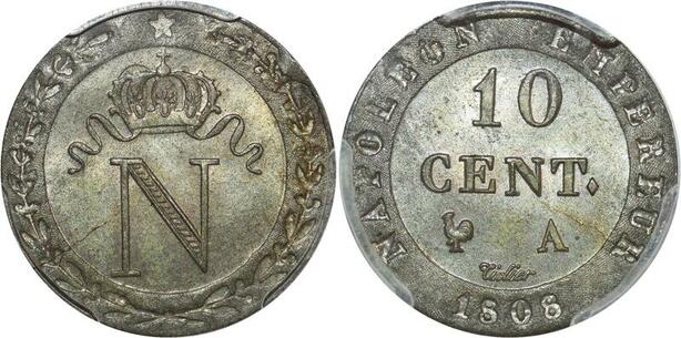 P2220 Unique France 10 Centimes Napoléon I 1808 A Paris Frappe Médaille PCGS MS64