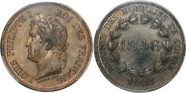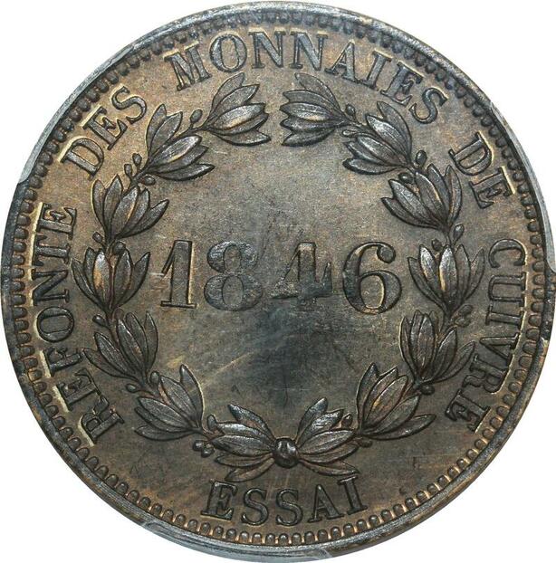 P2273 Rare France 5 Centimes Essai Module Louis Philippe I 1846 PCGS SP64 FDC