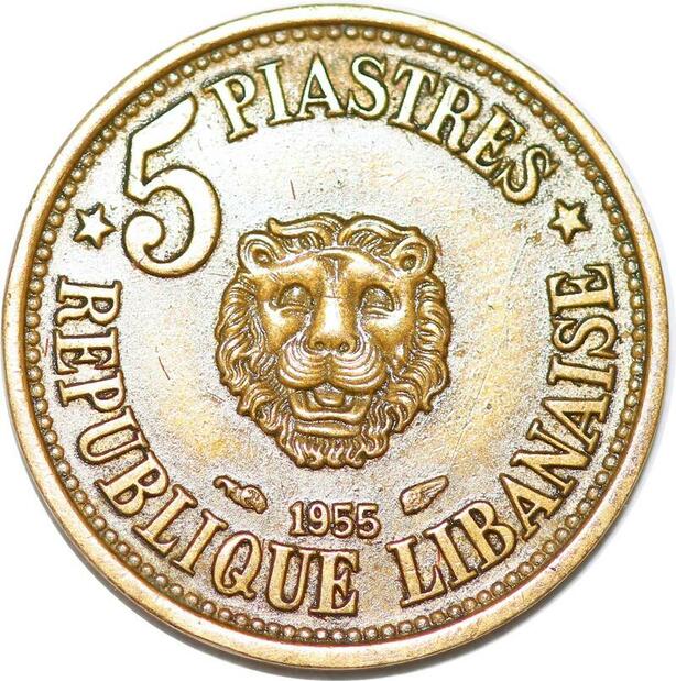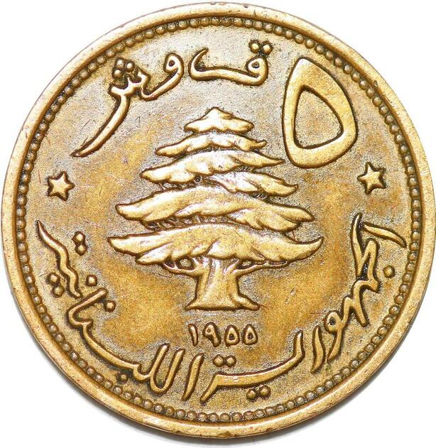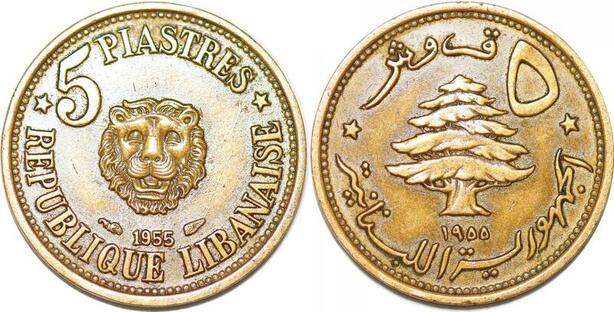 P2317 Lebanon 5 Piastres Cedar Tree Lion 1955 UNC ->Make offer