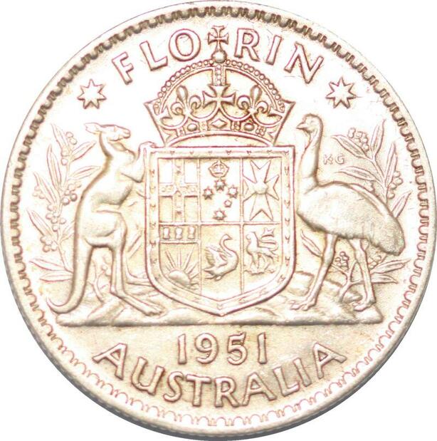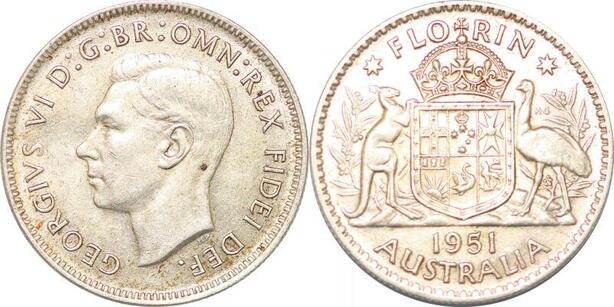 P2323 Scarce Australia Florin George VI 1951 Silver UNC ->Make offer