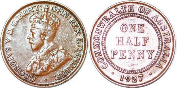 P2333 Australia Common Wealth 1/2 Penny George V 1927 ->Make offer