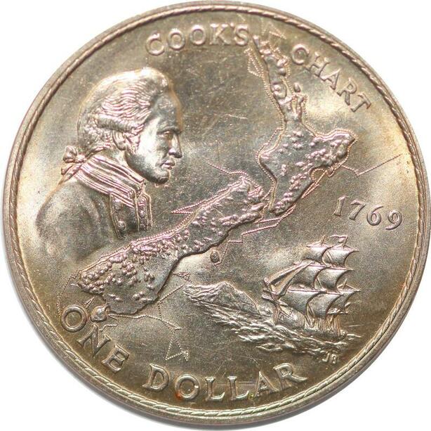 P2340 Medal New Zealand One Dollar Elizabeth II 1969 Cooks Chart 1769 UNC