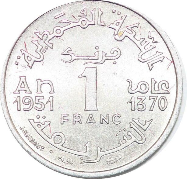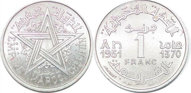 P2380 Maroc Morocco 1 Franc Mohammed V AH 1370 1951 SPL ->Faire offre