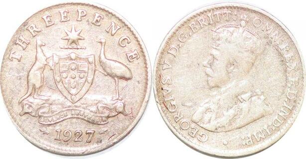 P2389 Australia 3 pence George V 1927 Silver ->Make offer