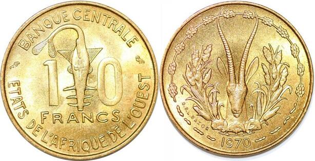 P2412 Banque Centrale Afrique de l'Ouest West Africa 10 Francs 1970 UNC -> Offer