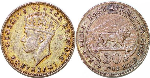 P2414 Ethiopia East Africa 50 Cents George VI 1942 H Heaton Argent ->Faire offre