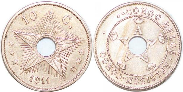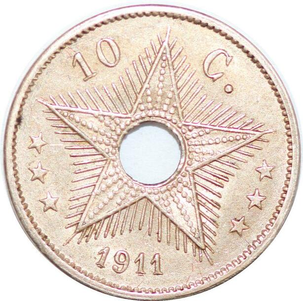 P2416 Belgique Congo 10 Centimes 1911 AU SUP