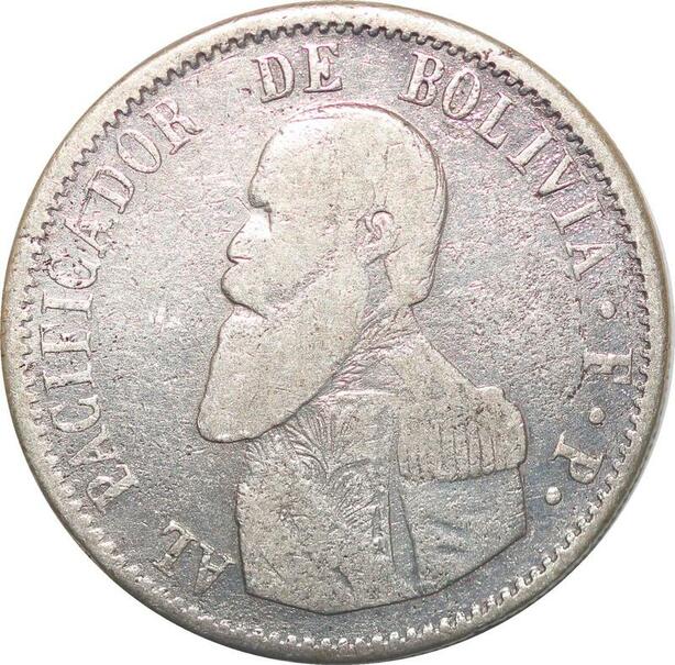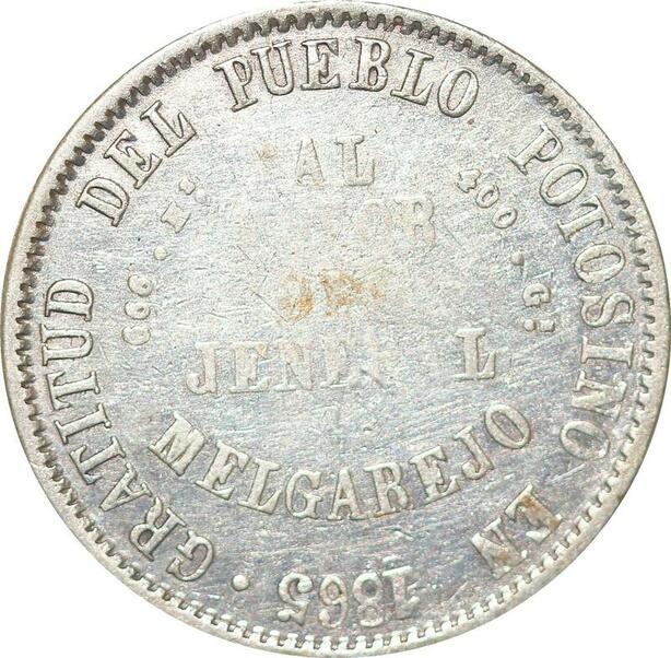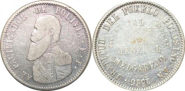 P2465 Bolivia Uno Un Melgarejo 1865 FP Silver ->Make offer