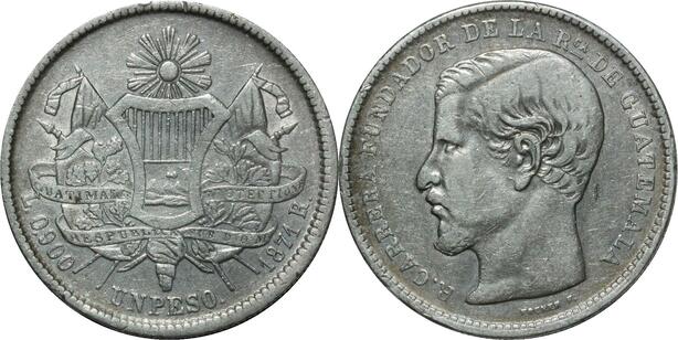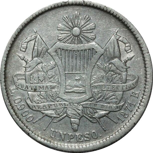 P2482 Rare Guatemala Un Peso Rafael Carrera 1871 R Silver ->Make offer