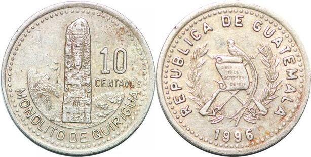 P2484 Guatemala 10 Centavos 1996 Monolito Quirigua ->Make offer