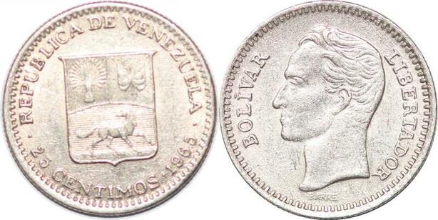 P2486 Venezuela 25 centimos 1965 AU ->Make offer