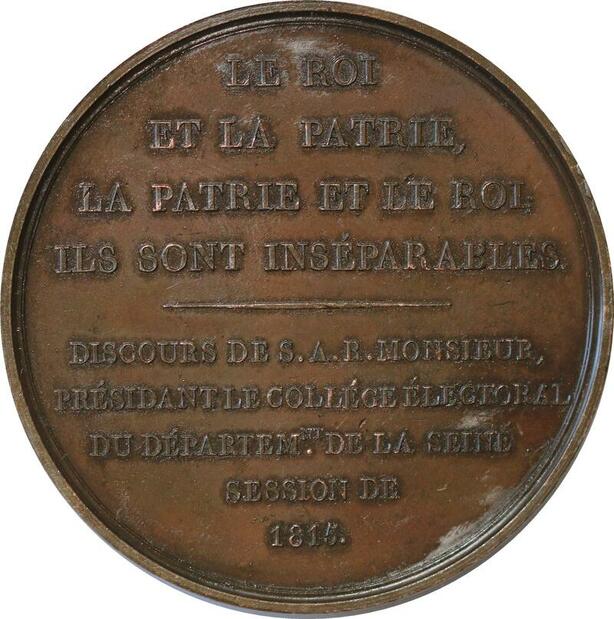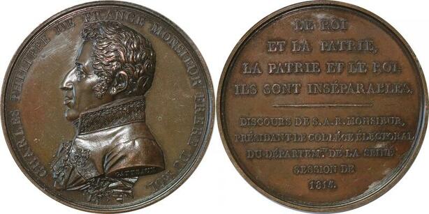 P2529 France Médaille Charles Philippe Collège Electoral 1814 Gatteaux Desnoyers SUP