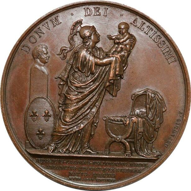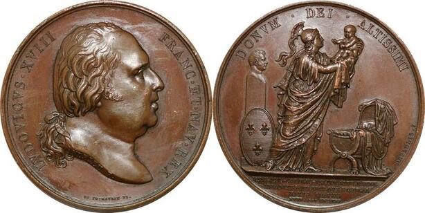 P2557 Rare France Médaille Louis XVIII Naissance Henri V 1820 Depaulis Desnoyers SPL