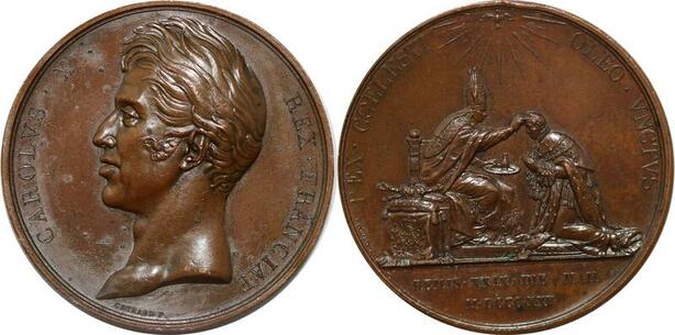 P2570 Rare France Médaille Charles X sacre Reims 1825 Gayrard Desnoyers SUP