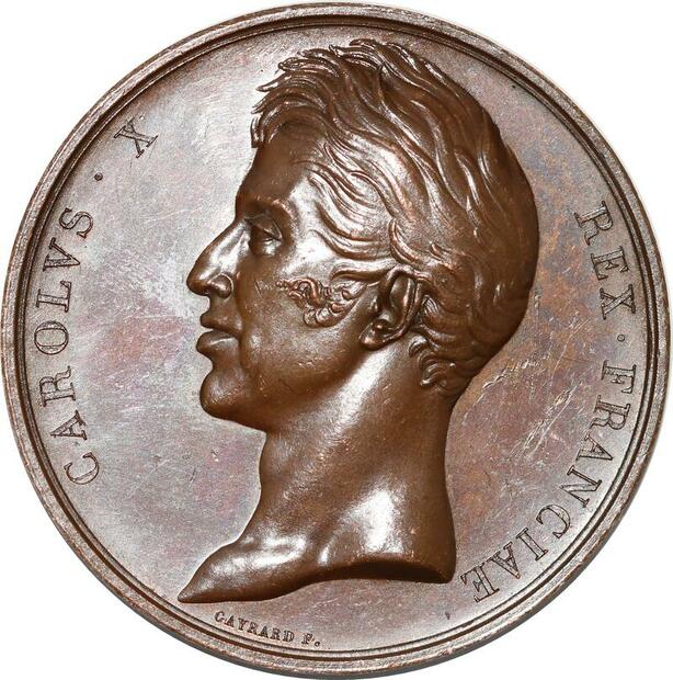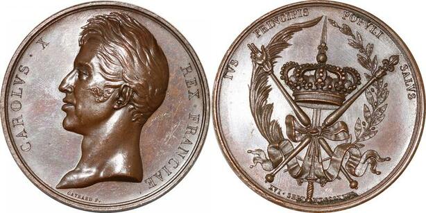 P2572 Rare France Médaille Charles X Avènement Trône 1824 Couronne Desnoyers SPL