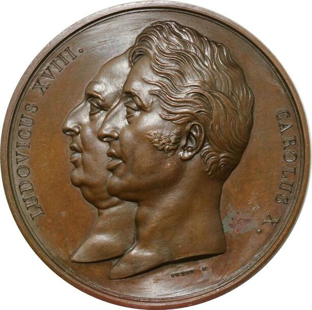 P2579 France Médaille Hommage Louis XIV 1827 Louis XVIII Charles X Desnoyers SPL