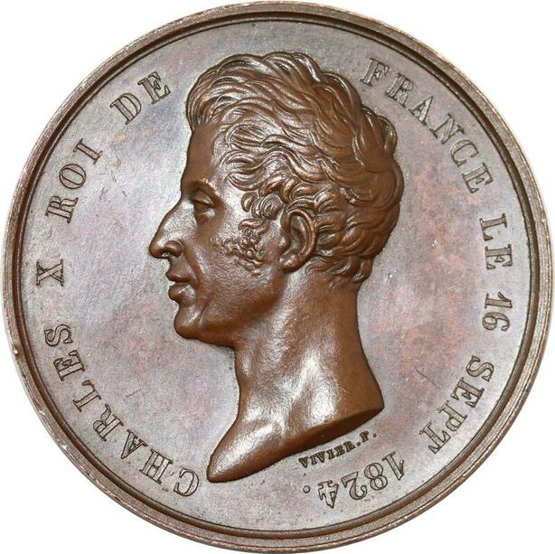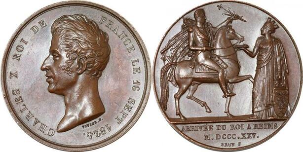 P2583 Rare France Charles X roi Reims sacre Vivier 1825 2eme ex connu Desnoyers SPL